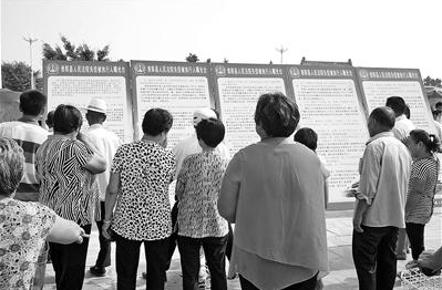在国家4A级旅游景区——河南省淮阳县太昊陵,当地群众在淮阳县人民法院公布的失信被执行人曝光台前围观,并不时议论。马 昊 摄