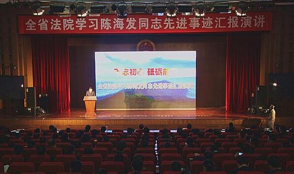 今天,河南省高级人民法院举行学习陈海发先进事迹汇报演讲会,共同纪念和学习陈海发。省高院党组书记、院长张立勇出席会议。省高院党组副书记、常务副院长田立文参加会议并讲话。在郑的院领导、厅级干部参加演讲会。 陈海发的先进事迹真实感人,可敬可学,为广大党员干部树立了新的标杆,为人民法院队伍建设增添了新的动力。演讲会上,大家观看了反映陈海发先进事迹的专题片《用信仰唱尽生命之歌》。来自全省法院的六名同志用质朴的语言、生动的事例和真挚的情感,深情讲述了陈海发的先进事迹,让现场听众再次感受到了陈海发的精神魅力,使大家的心灵受到了震撼,精神得到了洗礼。 受张立勇院长和党组委托,田立文就学习陈海发先进事迹,提出要求: 一要学习他信念坚定、对党忠诚的政治品格。全省法院广大干警要以陈海发为榜样,时刻牢记作为一名共产党员的职责使命,做党的人,听党的话,时刻跟党走,始终与党中央、省委保持高度一致,始终在省高院党组的坚强领导下开展工作,一切以组织为重、以大局为重,始终做到守纪律、讲规矩,永葆共产党员的先进性和纯洁性。 二要学习他开拓进取、勇于担当的职业追求。全省法院广大干警要以陈海发为榜样,紧紧围绕党和国家工作大局和法院重要工作部署,立足岗位,忠于职守,在难题面前敢闯敢试,在矛盾面前敢抓敢管,在风险面前敢作敢为,把全部心思和精力用在干事创业上。 三要学习他严谨负责、无私奉献的工作作风。全省法院广大干警要以陈海发为榜样,本着对司法事业极端负责的精神,把每一个工作岗位都当作奋斗的舞台,把每一项工作都当作奉献的机会,始终坚持最高标准、坚持最严要求,于细微之处见精神,在细节之间显水平。 四要学习他不怕困难、坚韧不屈的顽强意志。全省法院广大干警要以陈海发为榜样,大力发扬共产党员不畏艰难、不怕牺牲的大无畏精神,始终保持积极向上的心态,在平凡的岗位上勤勉工作、尽职尽责,生命不息、奋斗不止。