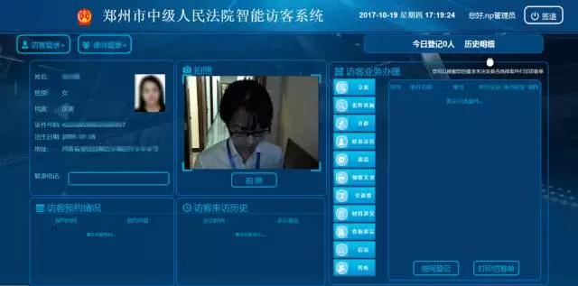 建立智能访客系统,系统支持当事人、律师、社会公众等不同来院人员快速便捷进行来院登记,并实时打印二维码访客单,支持利用二维码访客单与大厅业务办理进行关联,从而方便来院人员后续业务办理时自动加载读取数据。
